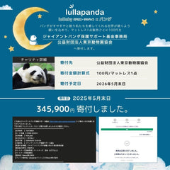 パンダがすやすやと眠り私たちを癒してくれる世界が続くよう願いを込めて、マットス1点販売ごとに100円を「ジャイアントパンダ保護サポート基金事務局 公益財団法人東京動物園協会」へ寄付します。寄付先:公益財団法人東京動物園協会