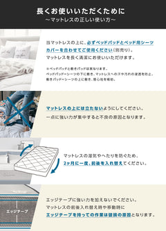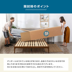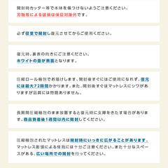 ・圧縮梱包されたマットレスは開封時にいっきに広がることがあります。マットレス膨張による怪我には十分ご注意ください。また十分なスペースがある、広い場所での開封を行ってください。