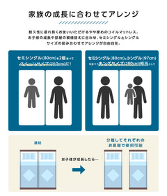 セミシングルサイズは幅80x長さ195cmx厚さ23cmです。シングルサイズは幅97x長さ195cmx厚さ23cmです。