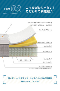 ★ポイント3:厚さ23cm、快眠をサポートするこだわりの9層構造